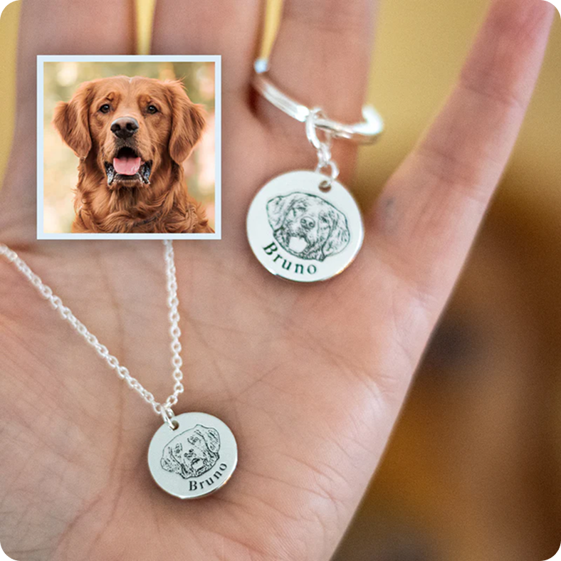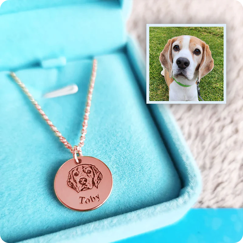 Keep your beloved companion close to your heart with our Personalized Pet Face Necklace, custom-engraved from your favorite photo.